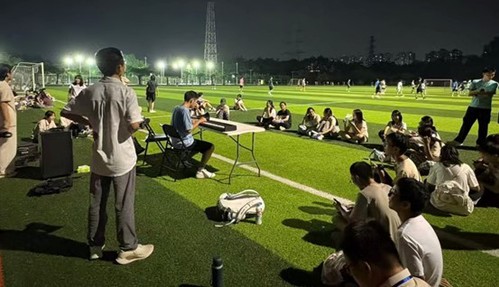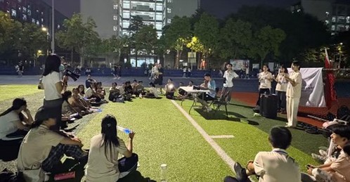 一轮明月,辉映家国同圆;一曲辞章,颂唱祖国华诞。9月29日晚,人文与法学学院师生在启林南操场开展了一场别开生面的“辞颂华诞,月圆诗圆”诗词联句主题活动。师生们以诗为媒,以词抒怀,在传统文化与人文情怀的浸润中共同庆祝中秋与国庆的到来。活动由2025级年级管理委员会主办,学院辅导员丘沐梓老师和同学们共同参与。